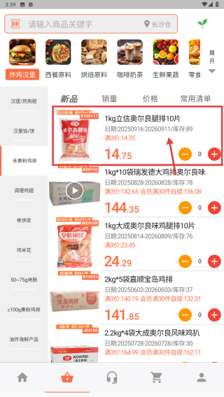 2、在商品瀏覽頁面,點擊左側(cè)未裹粉雞排分類,篩選對應(yīng)商品列表。