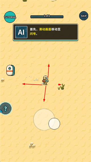 1、按照提示滑動畫面,控制角色移動到問號位置,開啟探索。