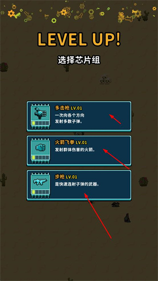 4、升級時,可選擇不同的芯片組來增強(qiáng)能力,有多擊槍、火箭飛拳、步槍等選項,選擇后可獲得對應(yīng)的武器能力。