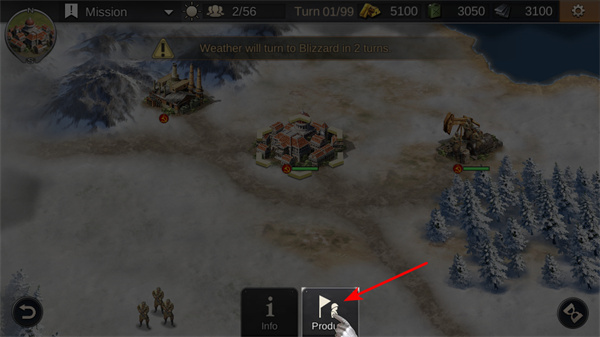 4、設(shè)置生產(chǎn)點需要點擊Produce按鈕,設(shè)置生產(chǎn)點以生產(chǎn)單位或資源,增強己方實力為任務(wù)完成提供保障。