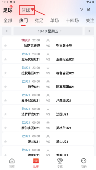 2、在賽事列表頁面,點擊籃球分類標簽,切換到籃球賽事板塊。