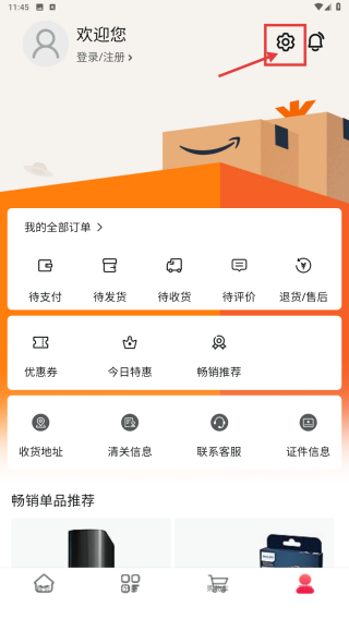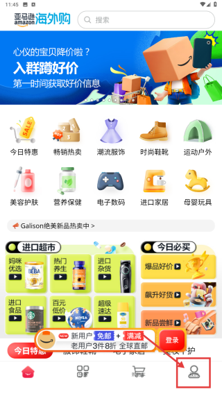 1、打開亞馬遜海外購應(yīng)用,點(diǎn)擊底部我的選項,進(jìn)入個人中心頁面。