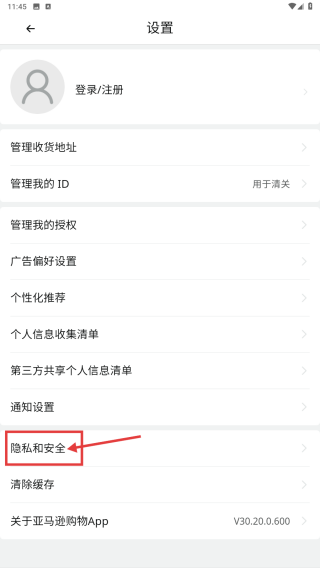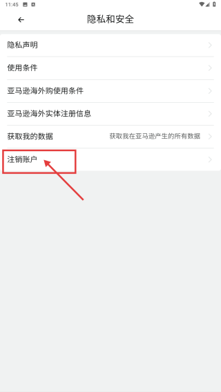 4、在隱私和安全頁面,點(diǎn)擊注銷賬戶選項,發(fā)起賬戶注銷操作。