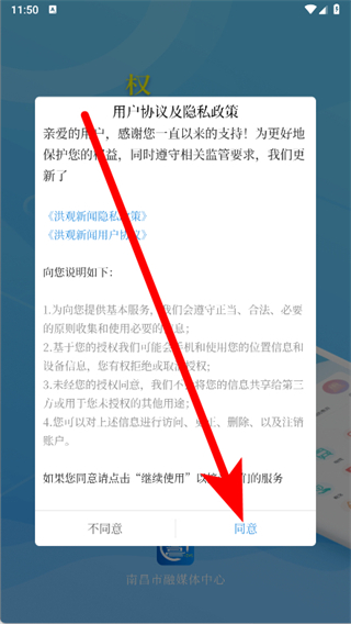 1、打開洪觀新聞,在彈窗中點擊同意。