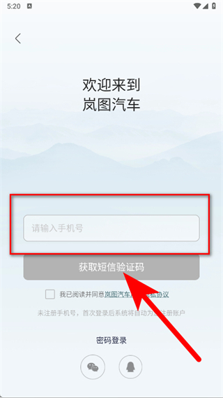 3、在登錄頁面,輸入手機號后點擊獲取短信驗證碼。