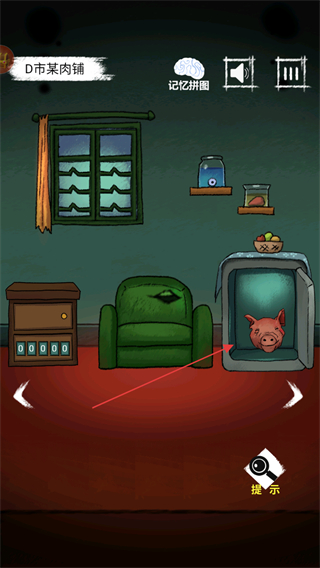 2、轉(zhuǎn)移視角,點(diǎn)擊房間里的冰柜,獲取里面的貢品豬頭道具。