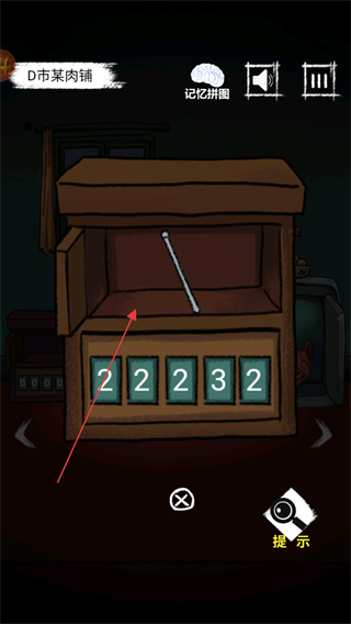 1、在D市某肉鋪場(chǎng)景,點(diǎn)擊供桌下方的抽屜,查看是否有線索道具。