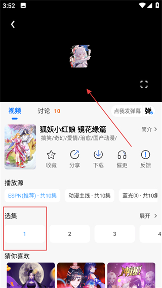 3、在動漫播放頁面的選集區(qū)域選擇集數(shù)如1,點(diǎn)擊屏幕觀看動漫。