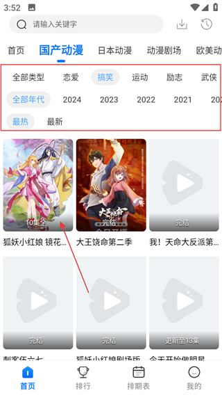 2、在國產(chǎn)動漫分類頁面,篩選好條件,點(diǎn)擊想看的動漫,進(jìn)入動漫播放頁面。