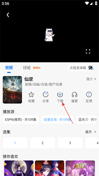 2、在仙逆播放頁(yè)面,點(diǎn)擊下載,進(jìn)入下載選擇頁(yè)面。