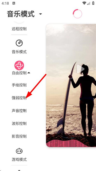 3、在自由控制的子選項(xiàng)中,點(diǎn)擊強(qiáng)弱控制,進(jìn)入強(qiáng)弱控制頁(yè)面。
