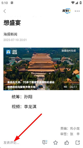 4、在評論輸入框中輸入評論內容,點擊發(fā)表,發(fā)布評論。