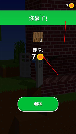 4、擊敗敵人后,會顯示你贏了,并能賺取金幣等獎勵,之后點擊繼續(xù),可進入后續(xù)游戲內容,繼續(xù)挑戰(zhàn)。