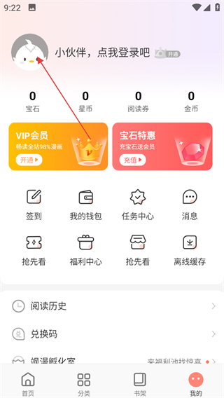 2、在個人頁面,點擊頭像區(qū)域,進(jìn)入登錄引導(dǎo)界面。