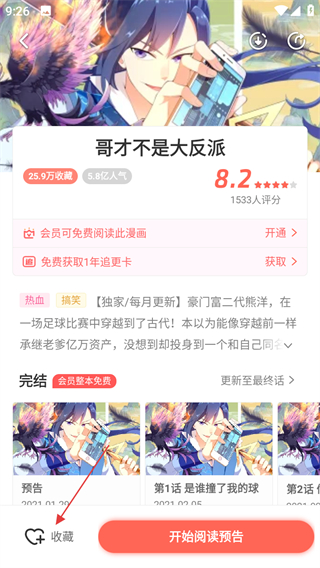 4、在哥才不是大反派詳情頁面,可點擊收藏將其加入收藏。
