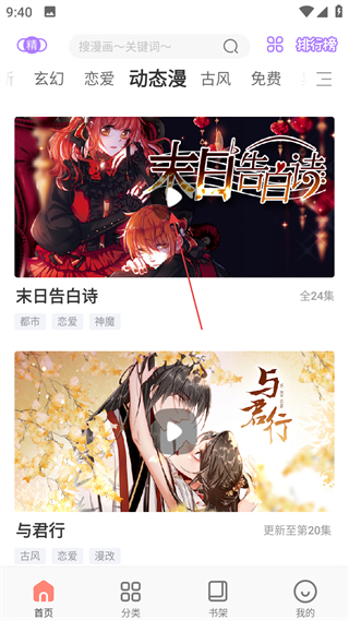 2、在動(dòng)態(tài)漫分類頁(yè)面,找到末日告白詩(shī),點(diǎn)擊進(jìn)入其播放頁(yè)面。