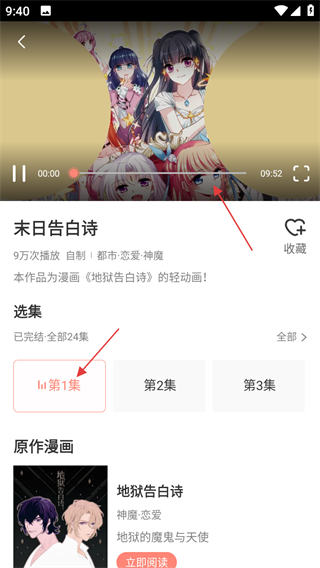 3、在末日告白詩(shī)播放頁(yè)面,選擇第1集,開(kāi)始觀看動(dòng)態(tài)漫畫(huà)內(nèi)容。