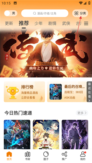 1、進入美漫園首頁,點擊頂部分類,進入分類頁面。