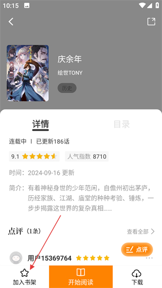 4、在慶余年詳情頁面,點擊加入書架,可將其添加到書架。