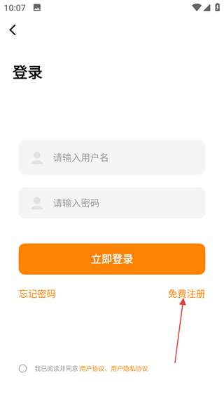 3、在登錄界面,若沒有賬號,點擊免費注冊,進入注冊界面。