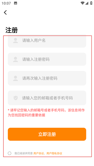 4、在注冊界面,輸入信息,勾選協(xié)議后,點擊立即注冊完成注冊操作。
