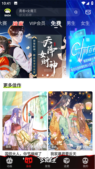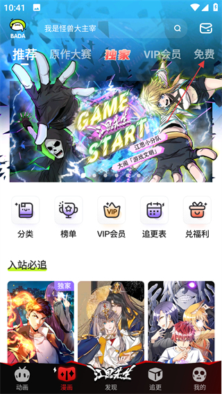 2、在漫畫頁面,點擊頂部免費標簽,進入免費漫畫列表頁面。
