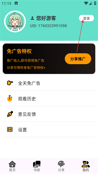 1、進(jìn)入輕漫島首頁,點擊底部我的,進(jìn)入個人頁面。