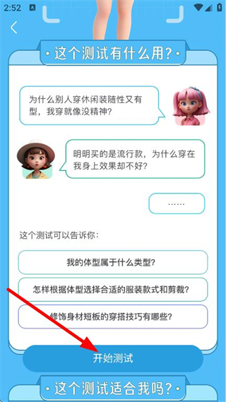 3、在體型檢測介紹頁面,點擊開始測試,進(jìn)入體型基礎(chǔ)信息填寫頁面。