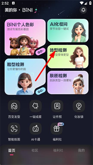 2、在軟件主界面,點擊體型檢測,進(jìn)入體型檢測介紹頁面。