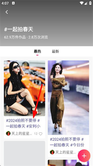 3、在話題頁面,點擊要查看的作品,進(jìn)入作品詳情頁。