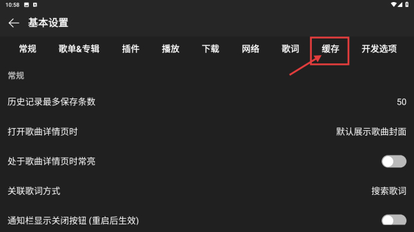 3、在基本設(shè)置頁面,點(diǎn)擊緩存標(biāo)簽,切換到緩存設(shè)置板塊。