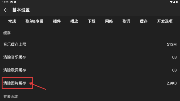 4、在緩存設(shè)置板塊,點(diǎn)擊清除圖片緩存選項(xiàng),完成圖片緩存清理操作。