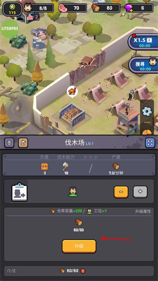 4、可對伐木場等建筑進(jìn)行升級,提升倉庫容量、工位數(shù)量、伐木能力和產(chǎn)量,增加木材資源的獲取效率。