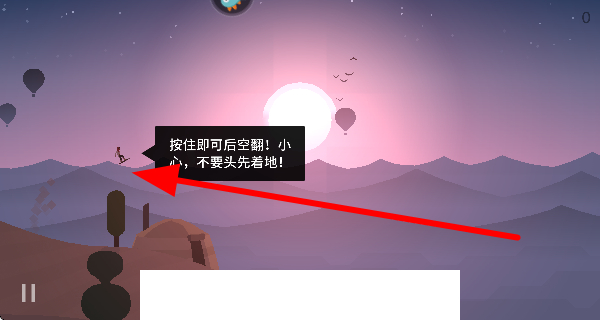 3、按住屏幕能讓角色后空翻,不過(guò)要小心,別讓角色頭先著地,避免出現(xiàn)失誤。