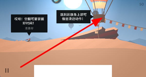 4、跳到彩旗條上,角色就能做出滑邊動(dòng)作,同時(shí)要把握好空翻的時(shí)間,順利完成動(dòng)作。