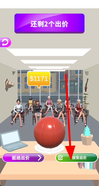 4、在拍賣場景中,當(dāng)出現(xiàn)合適的出價時,點擊接受出價,完成球體的售賣交易。