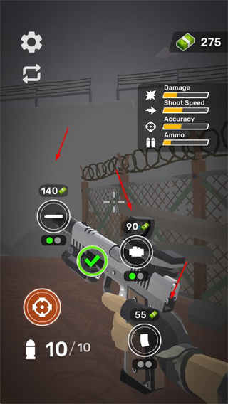 包含手槍、步槍、霰彈槍等多種類型武器,每種武器初始性能不同,可通過擊敗僵尸獲得的金錢逐步升級(jí),解鎖更強(qiáng)的攻擊效果,適應(yīng)不同戰(zhàn)斗場(chǎng)景。