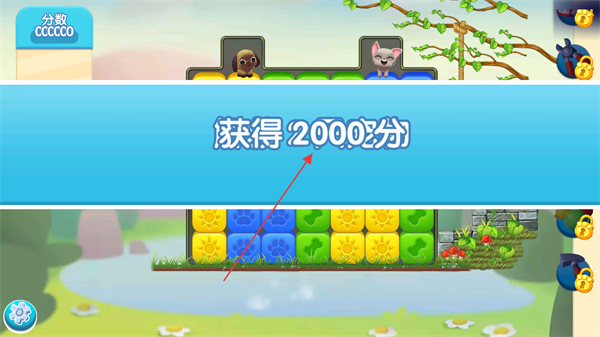 1、進(jìn)入游戲,明確目標(biāo)為獲得2000分,觀察界面中彩色方塊分布。