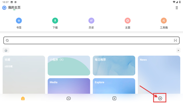 1、打開(kāi)瀏覽器類APP,點(diǎn)擊底部設(shè)置按鈕,進(jìn)入設(shè)置頁(yè)面。