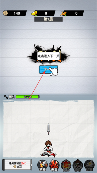 3、點(diǎn)擊點(diǎn)擊進(jìn)入下一關(guān)按鈕,進(jìn)入下一層關(guān)卡。