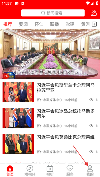 1、進(jìn)入懷仁云首頁,點(diǎn)擊底部我的,進(jìn)入個(gè)人頁面。