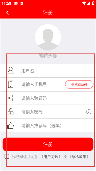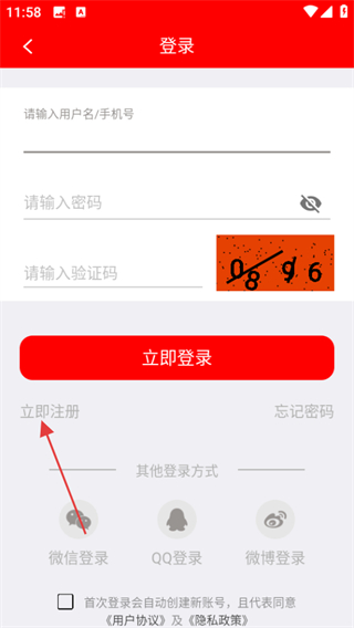 3、在登錄操作頁面,點(diǎn)擊注冊(cè)按鈕,進(jìn)入注冊(cè)操作頁面