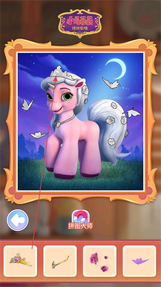 3、下方會(huì)出現(xiàn)小馬的裝飾道具,點(diǎn)擊道具放置到對應(yīng)位置,比如將皇冠放到小馬頭上。