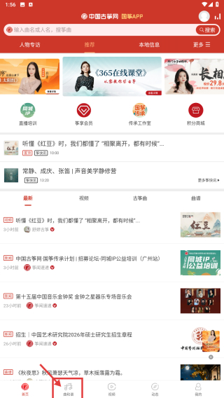 1、打開古箏學(xué)習(xí)應(yīng)用,點(diǎn)擊底部曲庫(kù)選項(xiàng),進(jìn)入曲庫(kù)分類頁(yè)面。