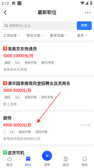 3、在最新職位頁面,選擇感興趣的職位,如廚師,進入職位詳情頁。