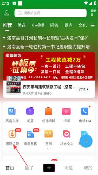1、進入掌上洛南首頁,點擊招聘求職,進入掌上洛南招聘網(wǎng)頁面。