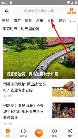 1、在新聞?lì)怉PP首頁(yè),點(diǎn)擊頂部的直播,進(jìn)入直播內(nèi)容列表頁(yè)面。