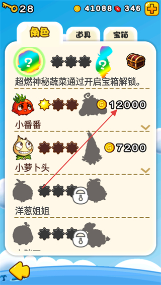 4、在角色界面,可用金幣解鎖新蔬菜角色,不同蔬菜角色有著不同的攻擊特點與能力。