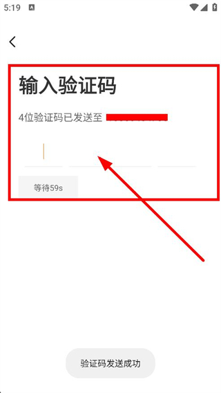 3、在輸入驗證碼頁面,輸入收到的4位驗證碼,完成登錄或注冊操作。