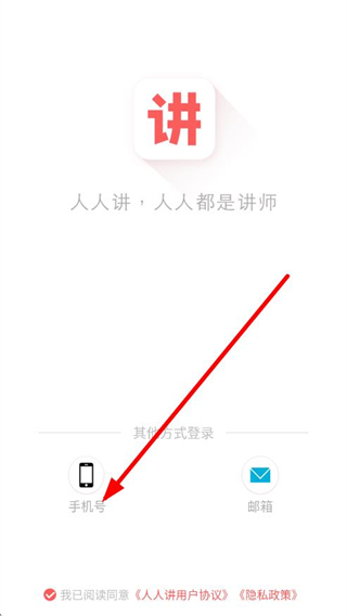 2、在登錄方式選擇頁面,點擊手機號,進入手機賬號登錄頁面。